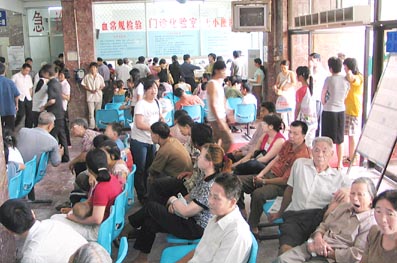 杭州同济医院自开业以来,门诊大厅的每个窗口都排着长长的队伍,从挂号窗口一直延伸到几十米开外。一位抱着孩子的大姐告我们:“天天都是这么多人,为了给孩子看病,今天早上五六点就来排队了。还有相当多的人是从外地赶来的,要想尽早看病就得全家出动,一个家属来排队,另一个照顾亲人,再有一个人负责楼上楼下跑腿,才能稍稍节约点时间,现在挂号、交费、等待叫号都要排好长时间,取药、取化验结果的队有时排得更长…… 头疼的是排了长队等到自己了,却没号或是挂不上自己想找的医生号。”