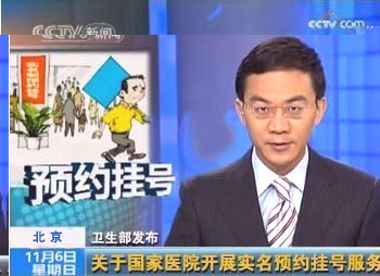 CCTV报道关于公立医院开展网上预约挂号服务