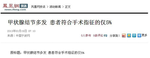 在其他医院的体检中心,医生们经常碰到一些患者在被查出甲状腺结节后, 个反应就是手术。该院体检中心一名医生说,有些患者是忧心过重,有些患者则是希望自己绝对健康,“大家要学会科学地对待疾病,有些时候,还要学会与疾病共处。”
