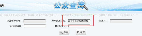 第二步:输入需要查询的专利技术名称,如“超导针孔定位消融术” 如图: