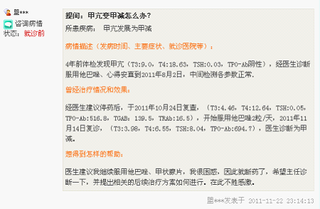 3、服用过量西药导致的甲亢变甲减。我是服用过量西药变甲减,点击咨询在线医生!