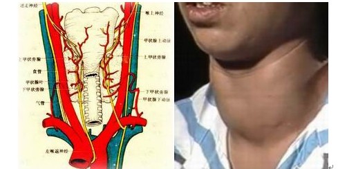 4.慢性淋巴性甲状腺炎(桥本甲状腺炎)呈弥漫性或结节性肿大,易与甲状腺癌相混淆。由于肿大的炎性腺体可将颈总动脉向后方推移,因而在腺体后缘可以摸到颈总动脉搏动,而甲状腺癌则往往将颈总动脉包绕在癌组织内,触诊时摸不到颈总动脉搏动,可借此作鉴别。