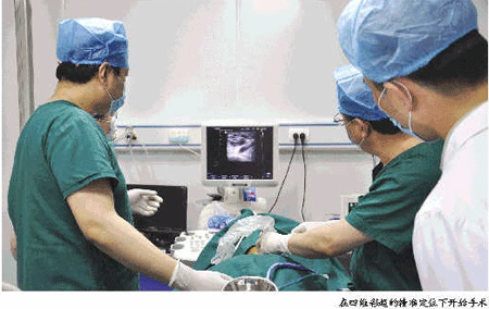 微波消融微创术,运用甲状腺射频消融仪,在前沿检测设备“四维彩超”基础上,通过离子波导向,智能锁定病灶准确位置,通过造影和弹性成像治疗进行电脑准确扫描,获取病灶大小,良恶、冷热等病变详细性质,并构建病变组织的四维动态结构。
